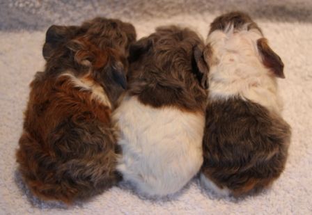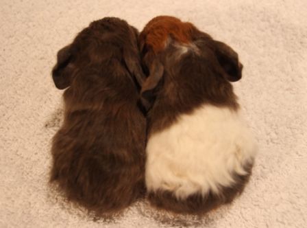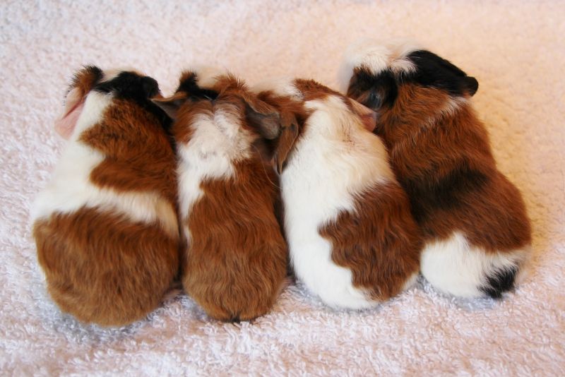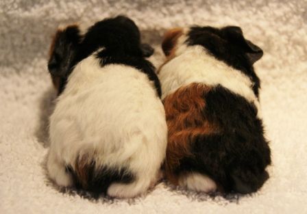 F2-Nest; 9-3-2014; Xinka (CH-Teddy, zwart/rood/wit) X Uno (CH-Teddy, zwart/rood/wit): 2 zeugjes en 2 beertjes in driekleur (zwart/rood/wit) en roodbont.
