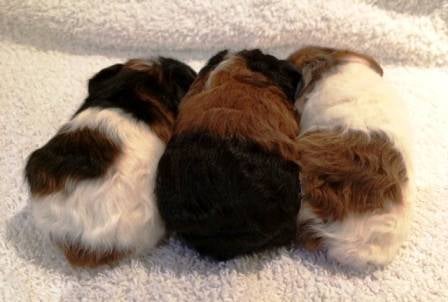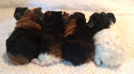 F4-Nest; 21-8-2017; Hanna (CH-Teddy, Driekleur) X Falco (CH-Teddy, slate/goud/wit): 3 beertjes en 1 zeugje in Driekleur ( slatedrager).